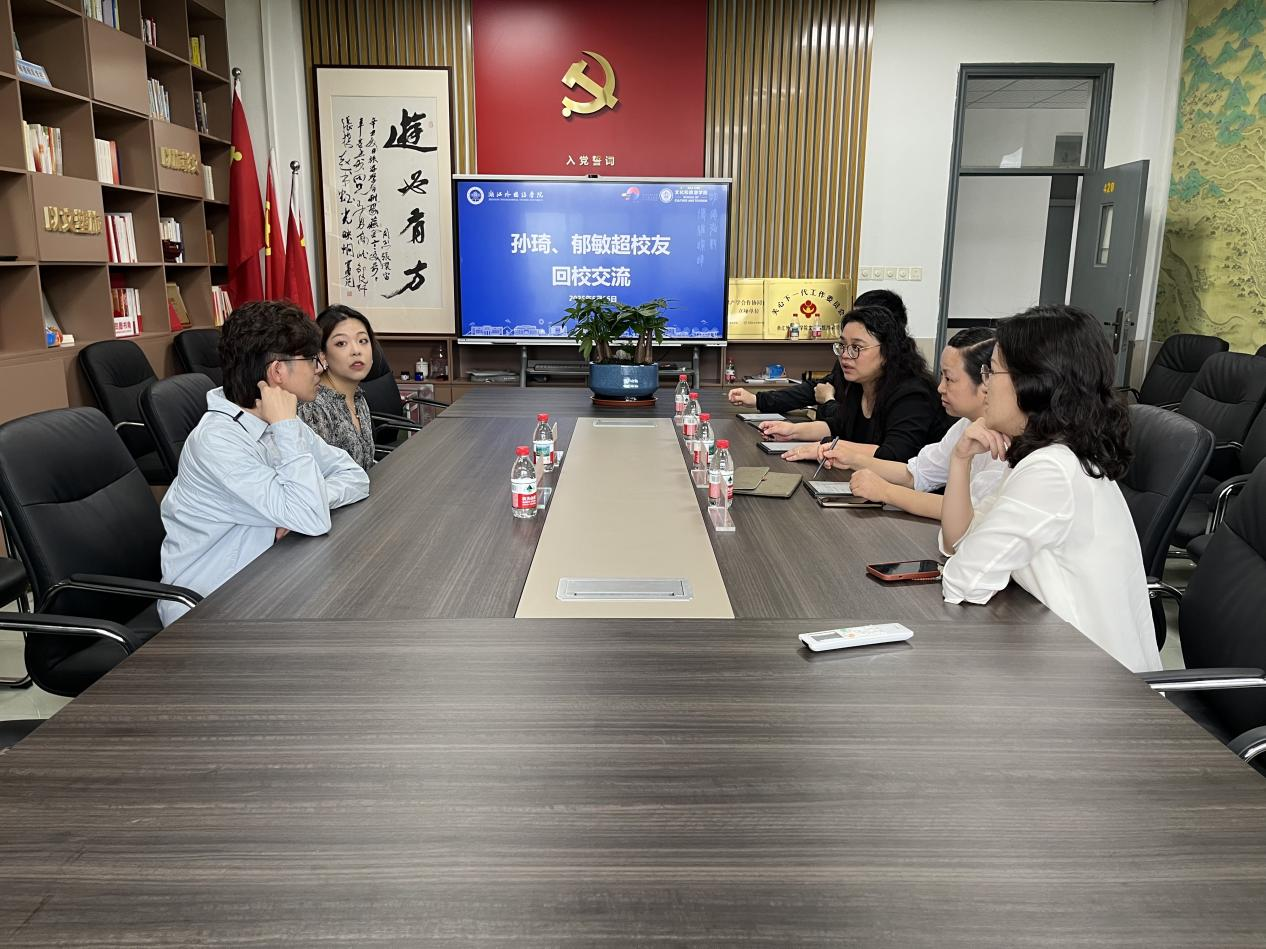 5月16日,台湾三级片 17届校友、杭州根脉农旅有限公司总经理孙琦和16届校友、杭州根脉农旅有限公司业务部经理郁敏超回到母校,与学院领导展开了一场意义非凡的座谈交流。