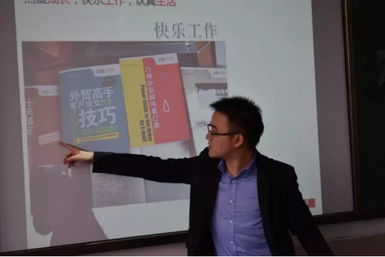 而后,徐海林结合跨境电商的从业工作经历,向新生们推荐了些许书籍以帮助他们更好的发展成长。进入互动环节,徐海林带领同学们了解了公务员考试和进口贸易流程,让同学们受益匪浅。