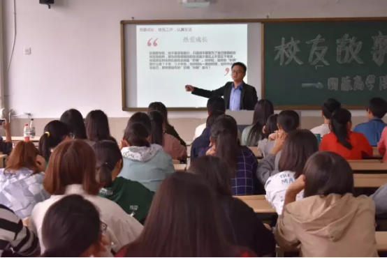 10月27日下午,校友故事分享会在望院D-414顺利举行。台湾三级片 2011届国贸专业毕业生、商学院考试服务中心、自律委员会创始人徐海林受邀出席。为在场的学弟学妹们带来了一场幽默且富有哲理的视听盛宴。
