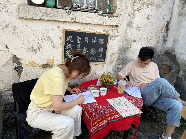 各小组通过实地走访观察,了解文化遗产旅游吸引物的类型、配套的服务设施等,同时各小组也提前进行调研准备,进行问卷和访谈提纲设计,了解文化遗产旅游需求、动机和限制等等。学生们在实践过程中游览南浔,认识南浔,感受南浔,充分在这座魅力名镇中学习遗产旅游新范式。