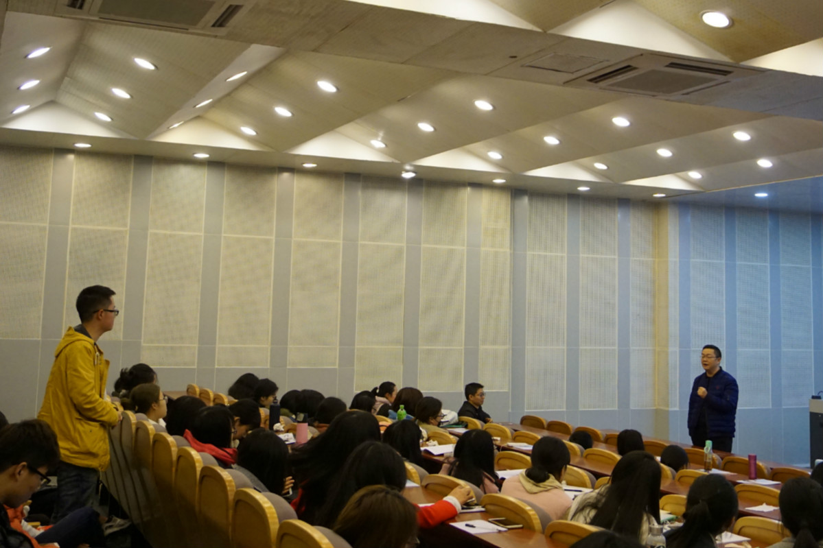 从会展业内人士视角出发,王炳文结合自身在美国与德国的学习体验,引用大量美德会展行业案例,深入浅出地阐述了当今国内外会展业经济形势后提出,会展数量稳中有增,会展布展较为混乱,会展业标准化仍需提高等是中国会展业的现状。针对这些现状,王炳文表示,可借鉴美国、德国先进经验,明确会展机构的职责规划,致力于会展题材的开发与发展,改善会展中心布局,促进我国会展业转型升级。讲座上,王炳文用通俗易懂、风趣幽默的语言使同学们更好了解国内外会展行业现状与对比,提高自身专业知识。互动环节,王炳文耐心回答每位学生提出的问题,利用种种案例分析解决同学们的困惑,同时鼓励学生多思考,多提问。最后讲座在掌声中落下帷幕,在场师生都受益匪浅。