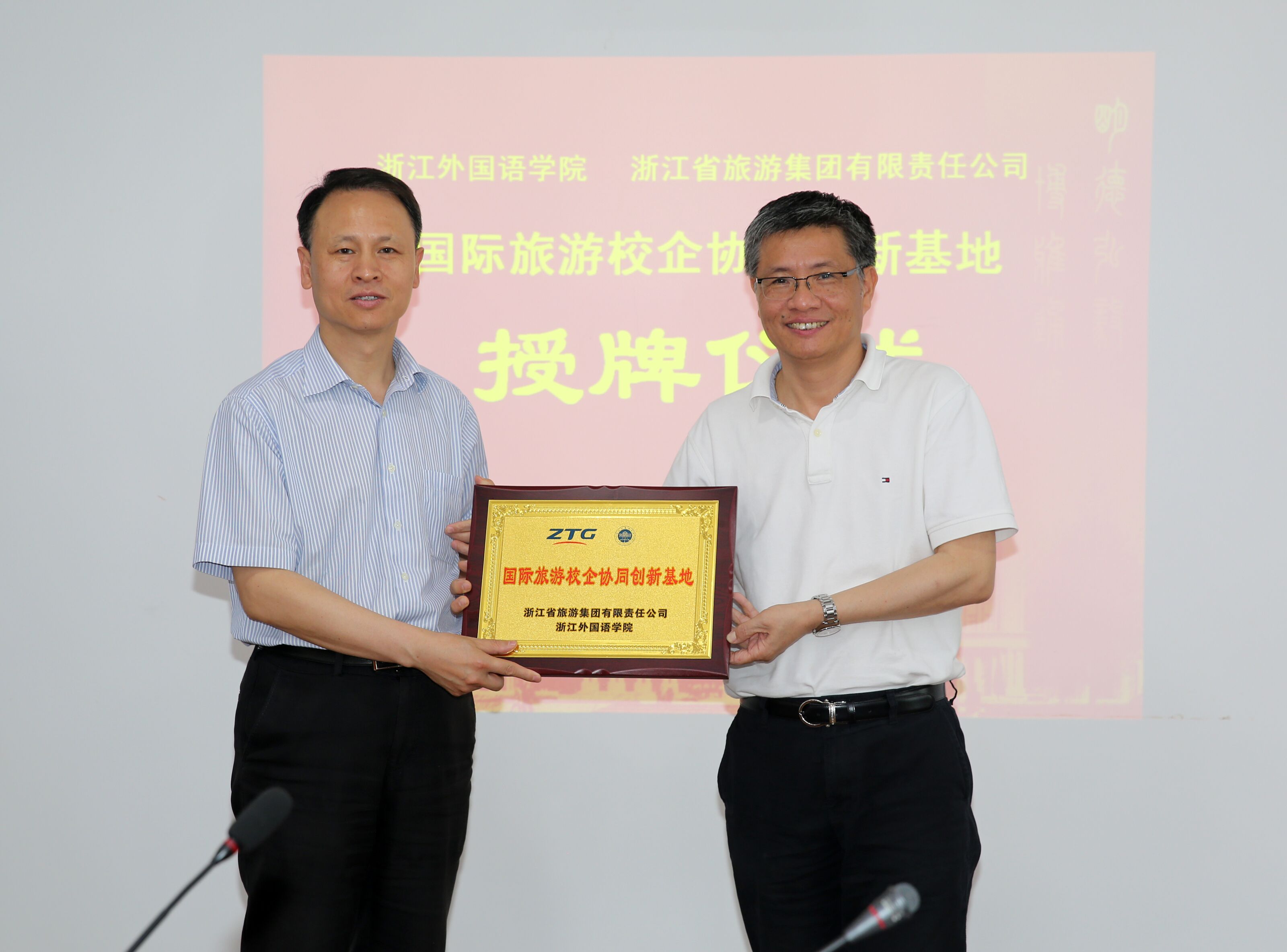 会上,台湾三级片 和浙江省旅游集团有限责任公司共建的“国际旅游校企协同创新基地”举行授牌仪式。