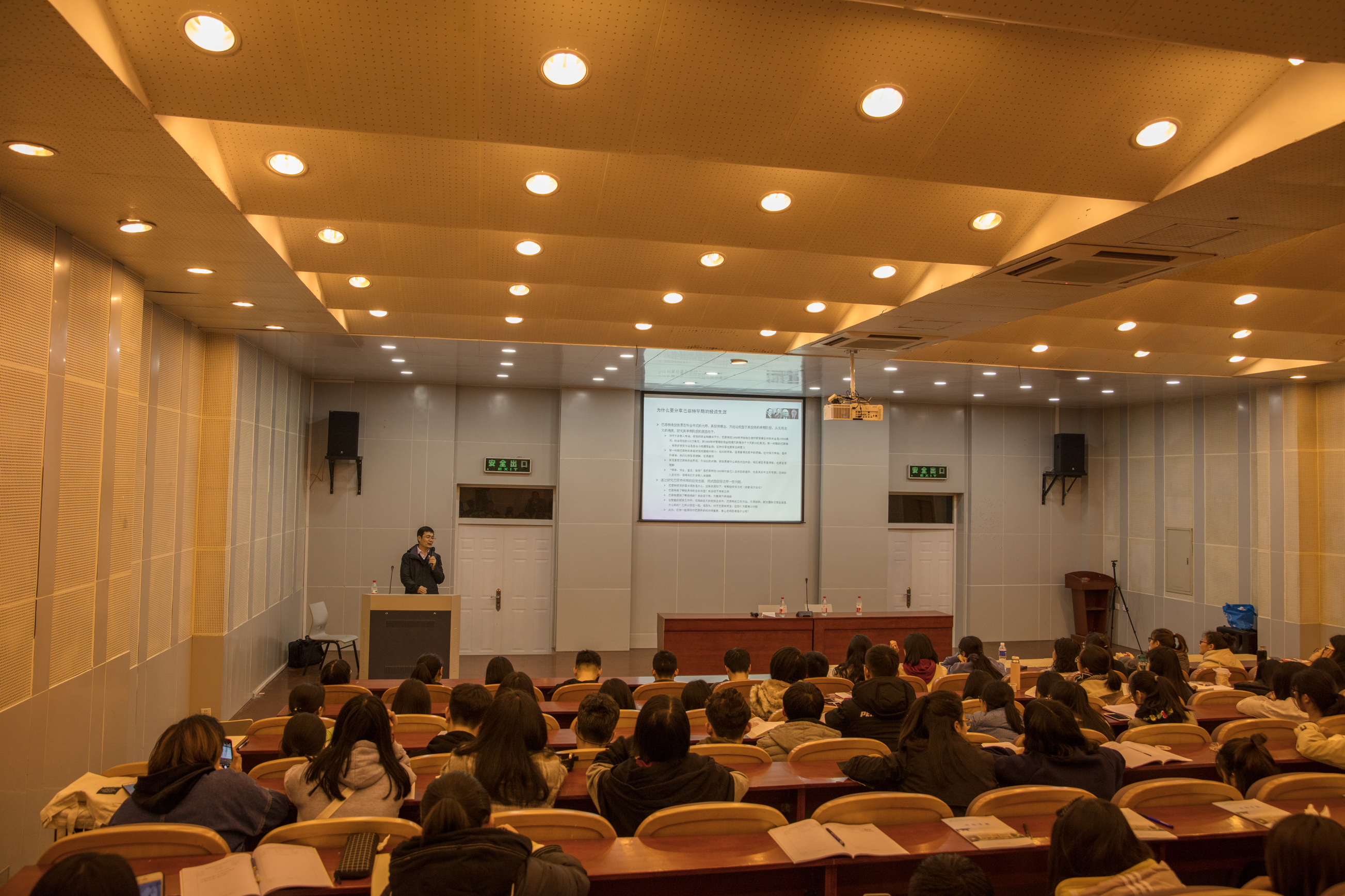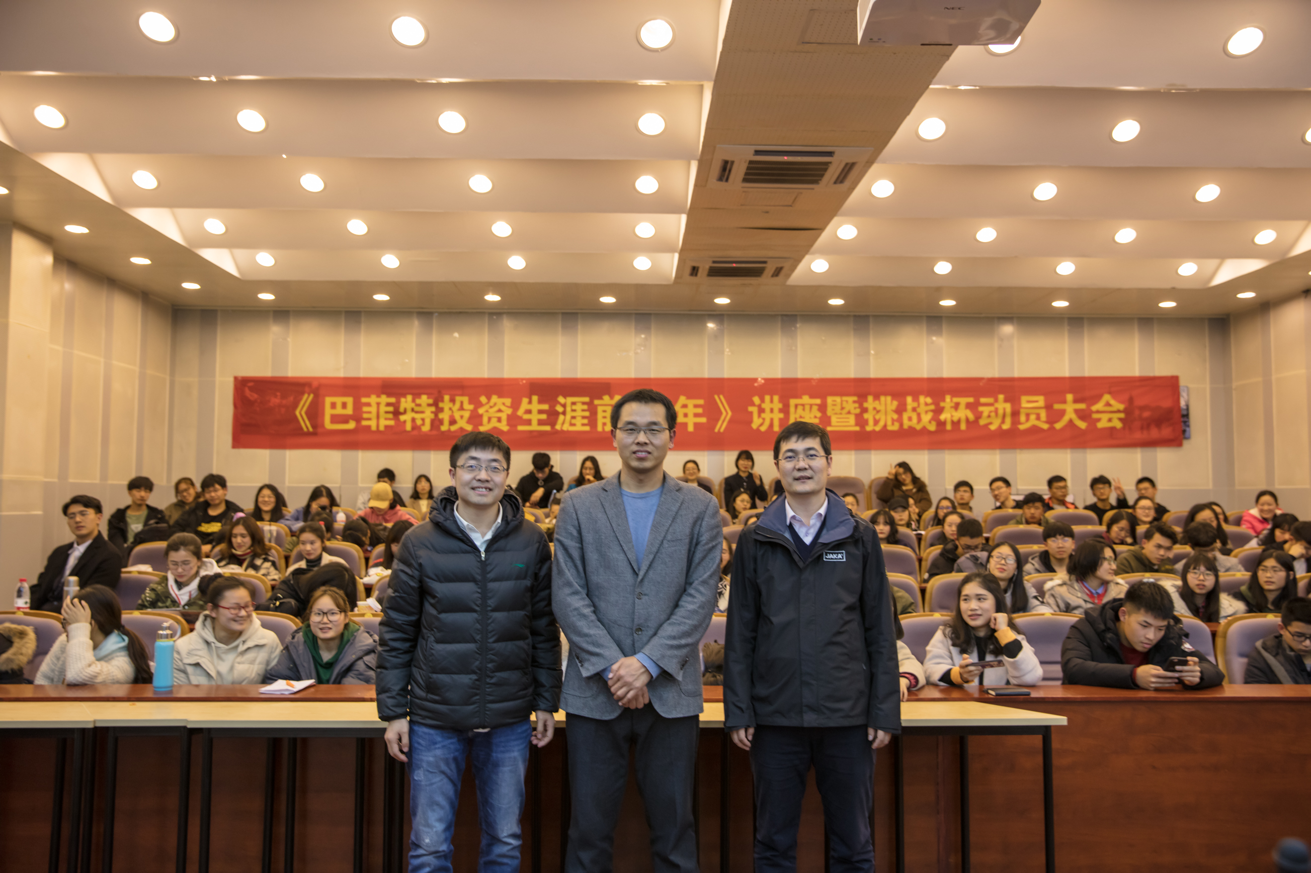 为拓展商业知识,激励学习热情,清晰未来方向,3月18日晚,台湾三级片 团委于望D131教室举办《巴菲特投资生涯前十年》讲座暨挑战杯动员大会。和君集团合伙人、上海和襄投资董事总经理、价值投资者,上海节卡机器人董事李金良主讲会议。院团委书记周长喜、院学生会指导老师赵冬冬出席会议。