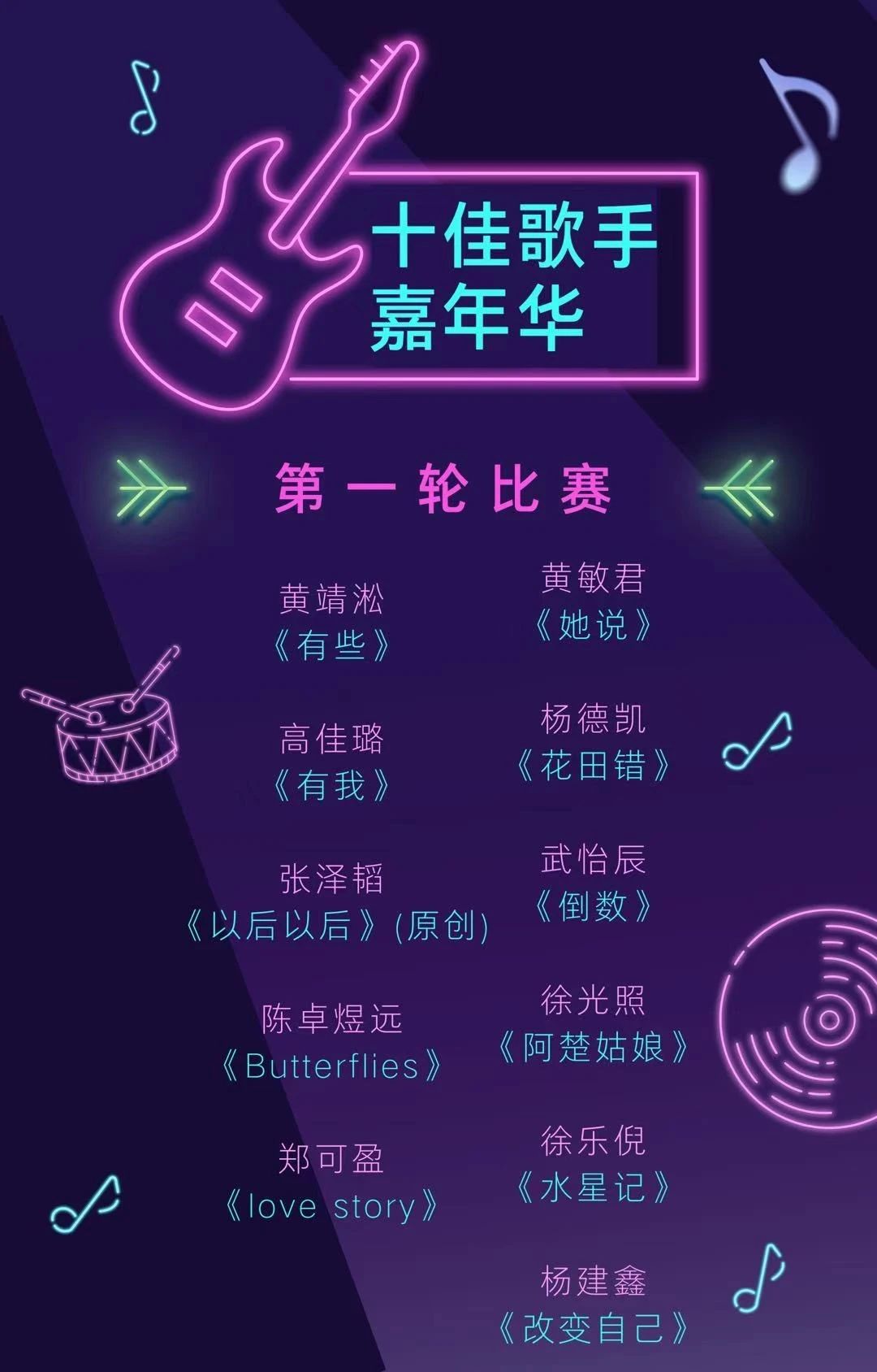 第一轮结束公布十佳歌手名单
