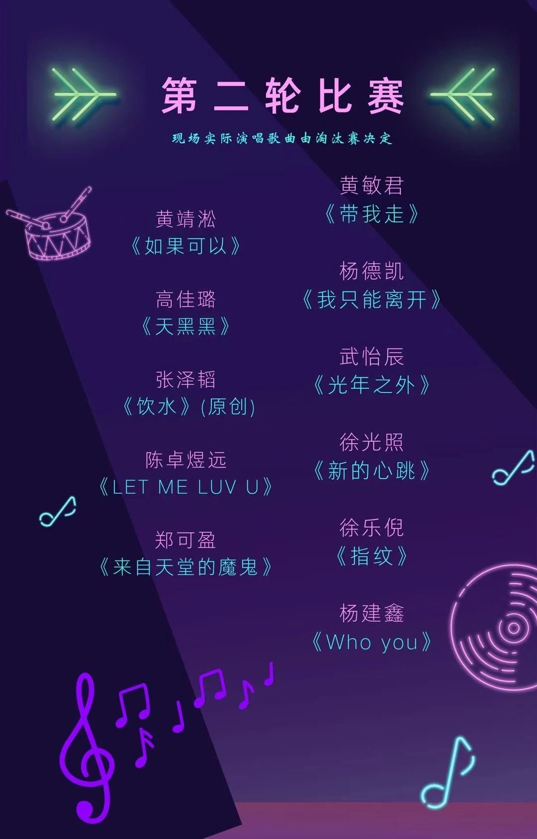 10位选手完整演唱第二首歌曲