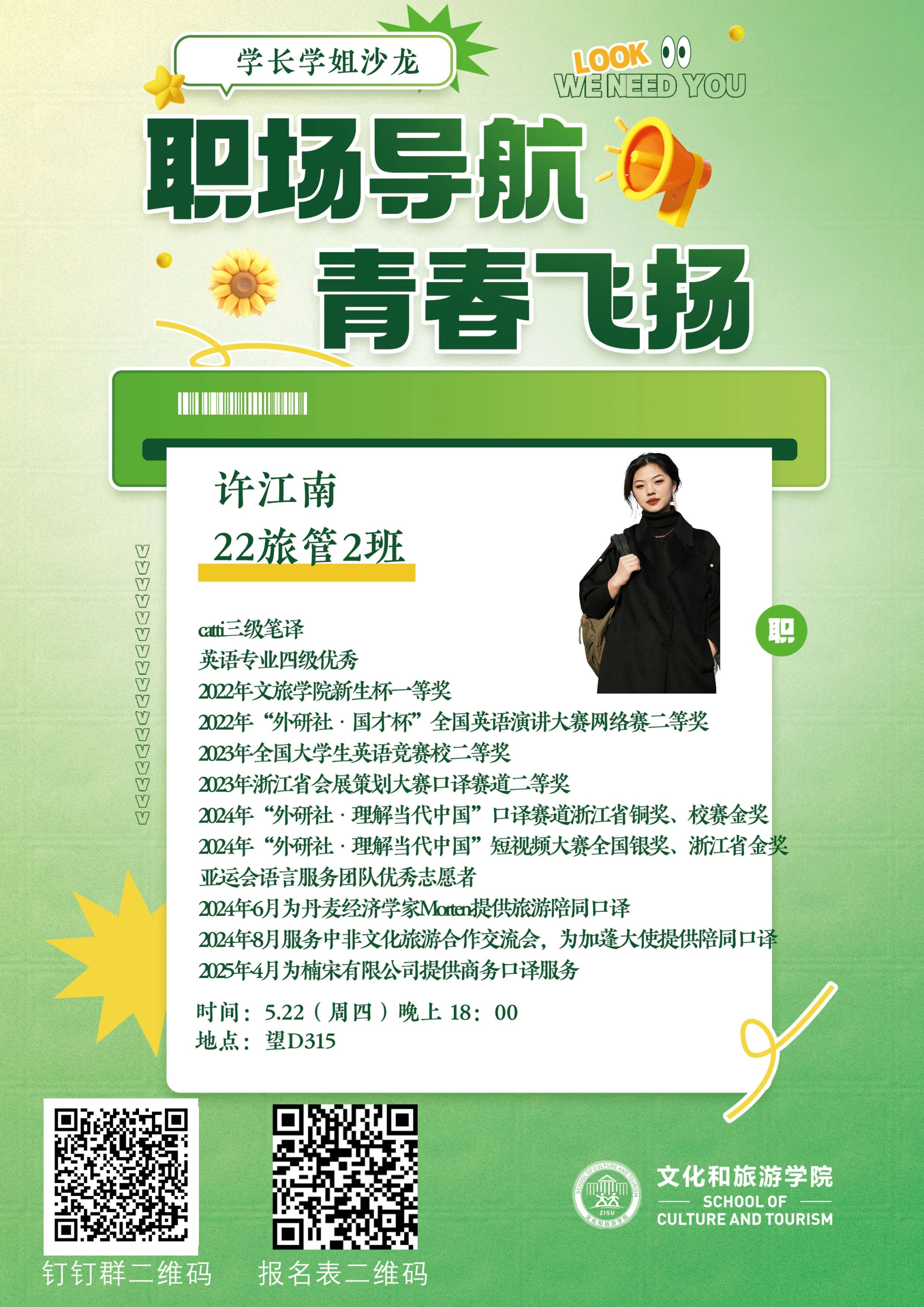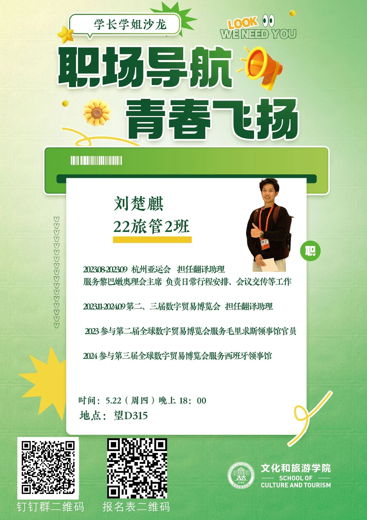 活动嘉宾:22旅管2班 许江南、22旅管2班 刘楚麒