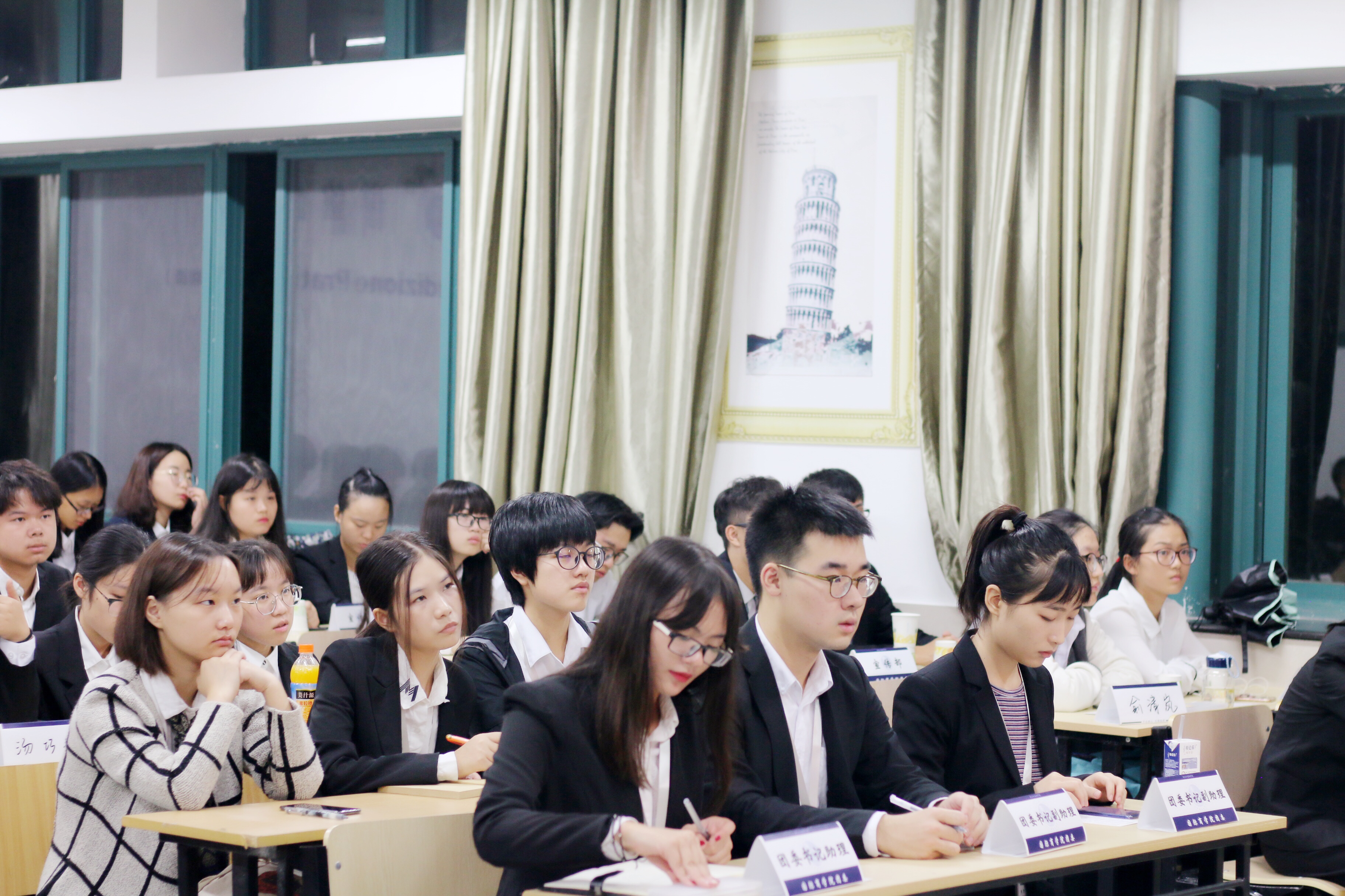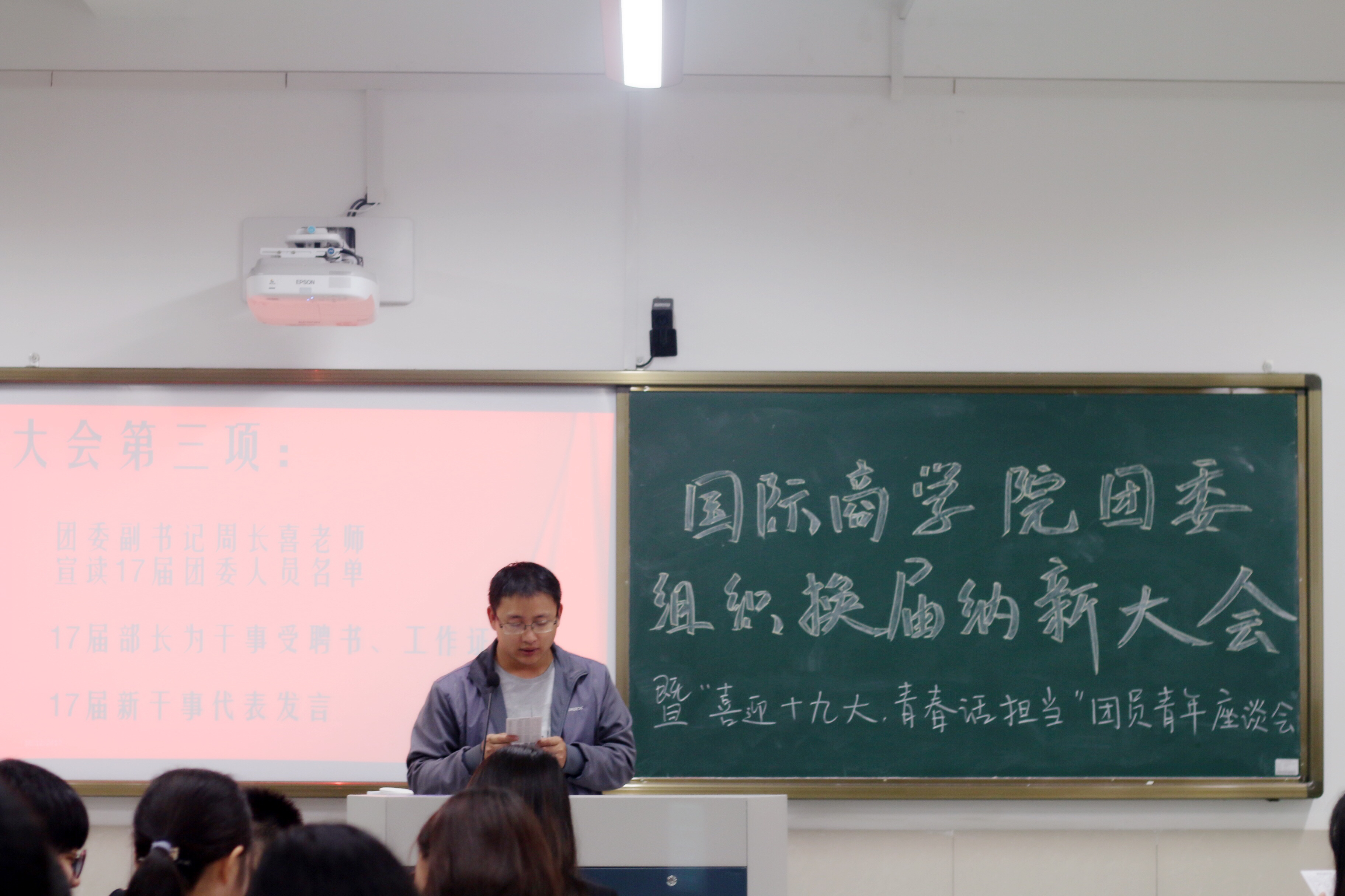 秋意渐起,雨打窗棂。为了更好的迎接即将到来的“十九大”,为商学院团委注入新鲜的血液,10月12日晚六时,台湾三级片 团委于望院D211教室召开了院团委组织换届纳新大会暨“喜迎十九大,青春话担当”团员青年座谈会。院团委书记梁汲媛,副书记周长喜应出席座谈会。会议由姜雯主持会议,院团委全体成员参与了会议。