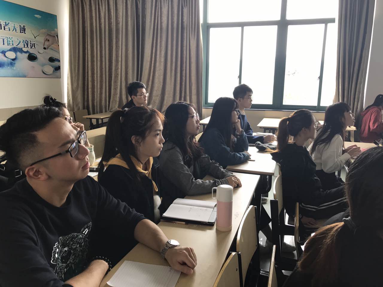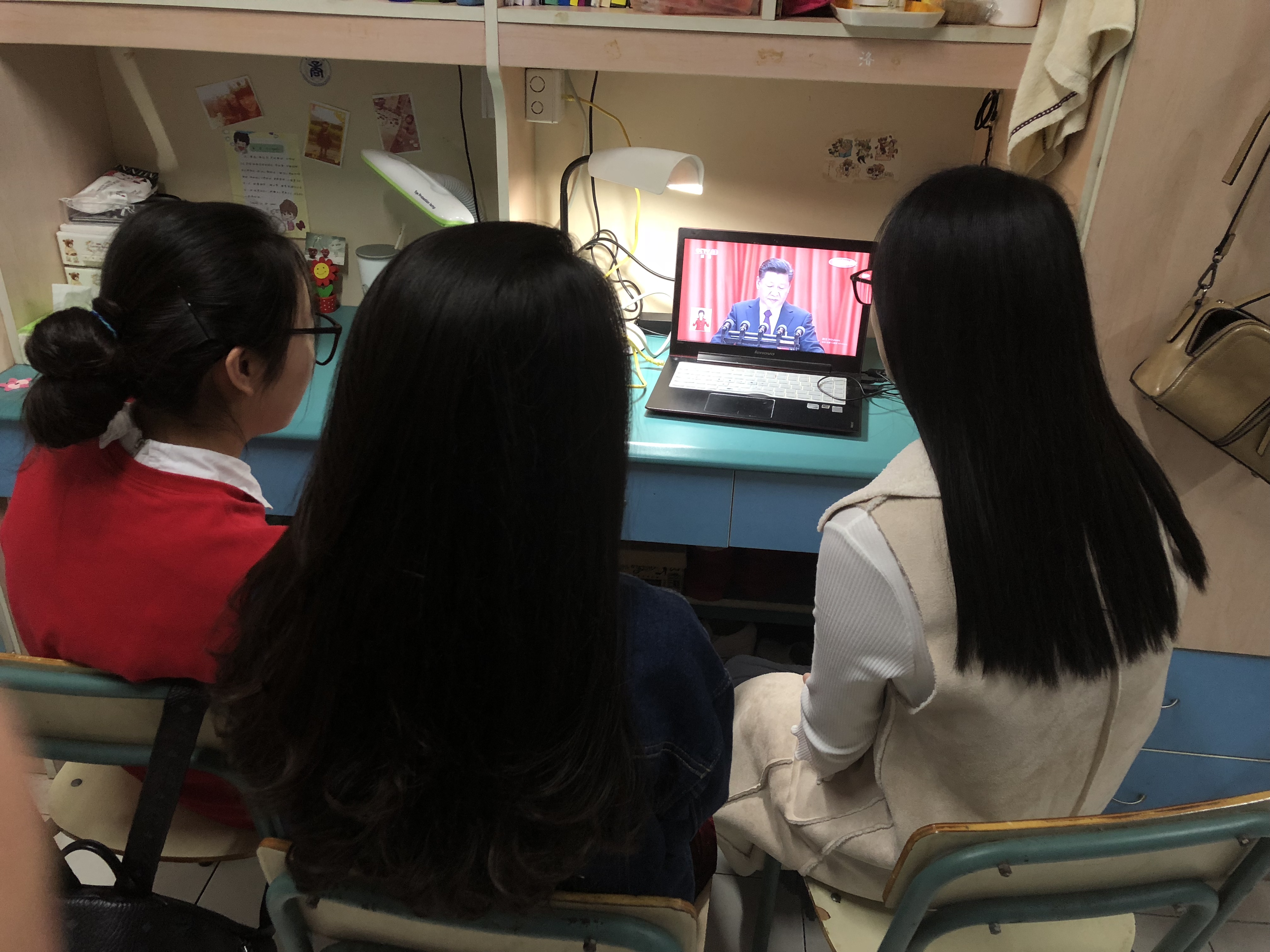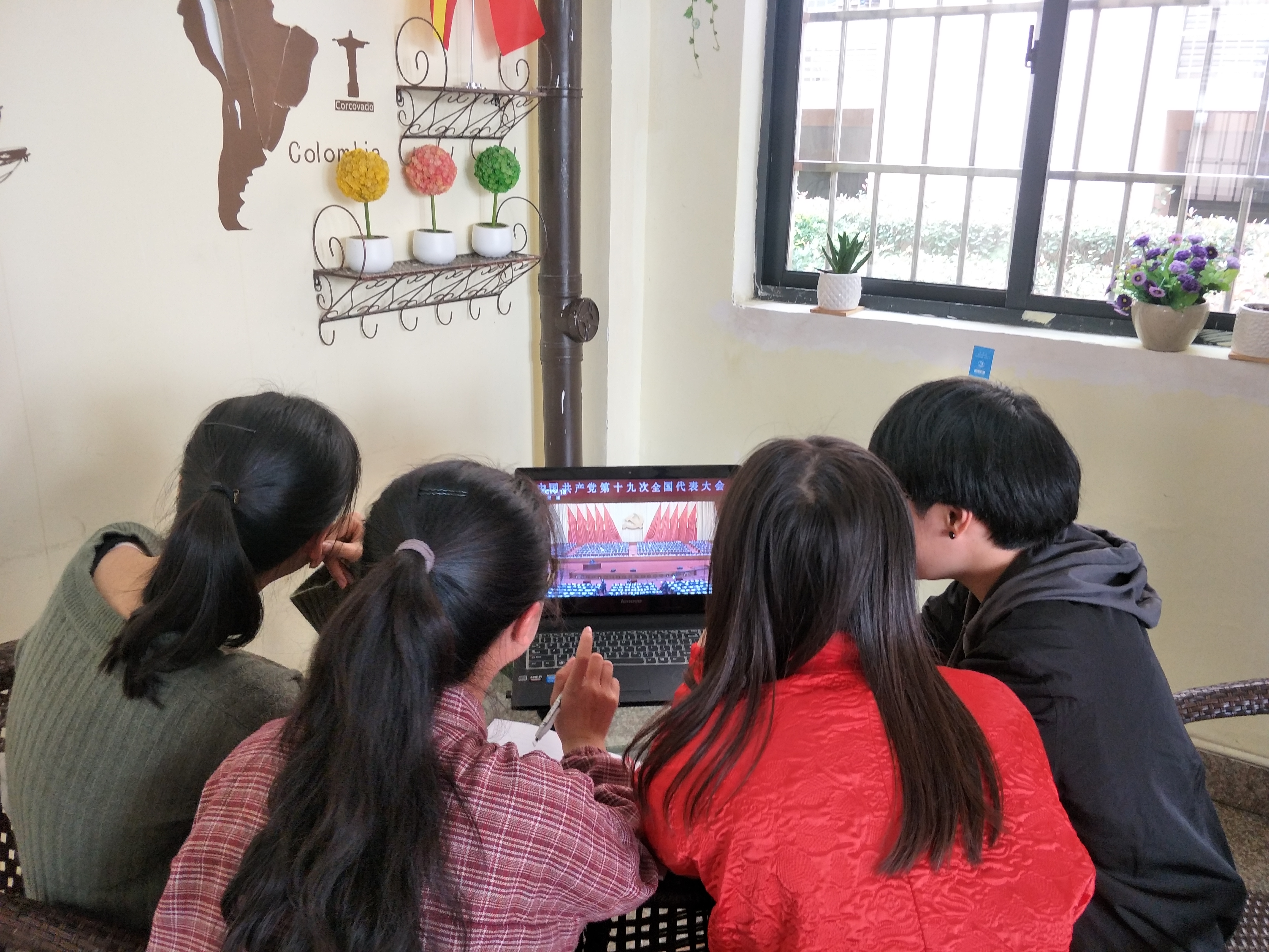 在雅致苑的学生宿舍里,学生第三党支部同学们三三两两围坐在笔记本电脑前,仔细聆听着习近平总书记所作的报告,听到关于对青年的表述时同学们一致赞叹称好。学生党员姚瑶内心激动的说:“这是对我们巨大的鼓励,总书记说的‘中国梦是我们这一代的,更是青年一代的。’、‘青年一代有理想、有担当,国家就有前途,民族就有希望’鼓舞着我,这和我们学校学院今年以来一直开展的‘青年学子学青年习近平’教育活动对我们的要求是一致的,我们院开展的各种育人活动如演讲比赛、志愿者活动、月光书会都是在为我们青年学子实现梦想插上了有力的翅膀!”