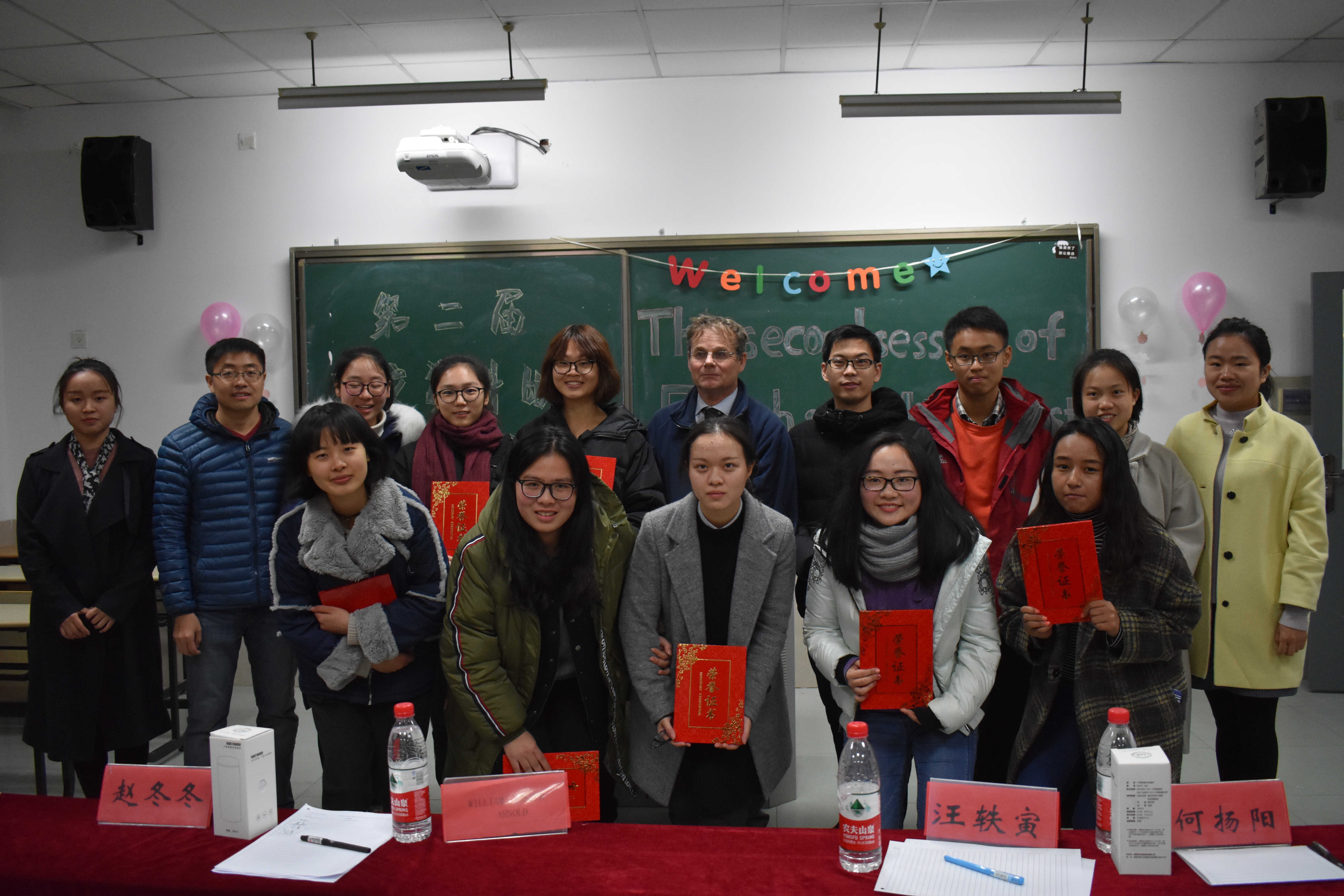 赛后,外教William Joseph Arnold,赵冬冬老师和汪轶寅老师分别对比赛进行了点评,称赞了选手们的勇气和实力,并且希望今后能有更多机会锻炼选手们演讲的能力。在宣布最终获奖选手后,评委们与获奖的同学合影留恋,本次演讲比赛圆满结束。