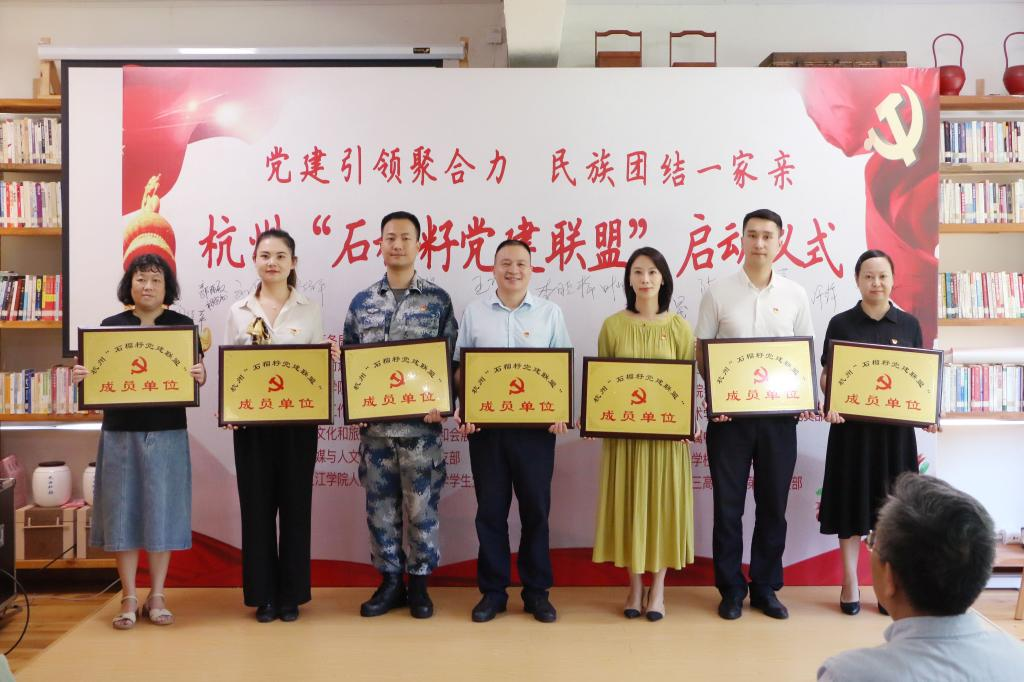 在离学院不远的西湖区“转塘·石榴籽家园”,学院旅游会展专业学生党支部正式成为杭州“石榴籽党建联盟”首批成员单位之一。“开门办党建是我们一直以来的传统。”学院党总支书记范芸芸在授牌仪式上说。培育学生的家国情怀,很重要的一点铸牢中华民族共同体意识,加入“石榴籽党建联盟”是探索党建工作和民族工作有机结合的全新尝试,旨在实现党建引领聚合力、民族团结一家亲。