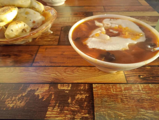 胡辣汤,是河南早餐中常见的传统汤类名吃。胡辣汤里的配料是十分丰富的,譬如牛肉与羊肉、豆腐皮等等。2021年6月,西华县逍遥胡辣汤制作技艺入选国家级非物质文化遗产代表性项目名录。