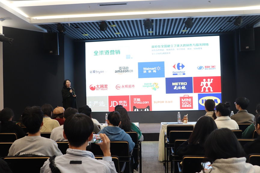 双枪公司人事负责人和外贸事业部相关负责人为大家介绍了公司整体情况、理念愿景和人才培养体系,并着重介绍了通过“高素质高成长高回报”“业绩好机会好氛围好”帮助年轻人实现“物质精神双丰收、快乐成长双收获”的企业文化。