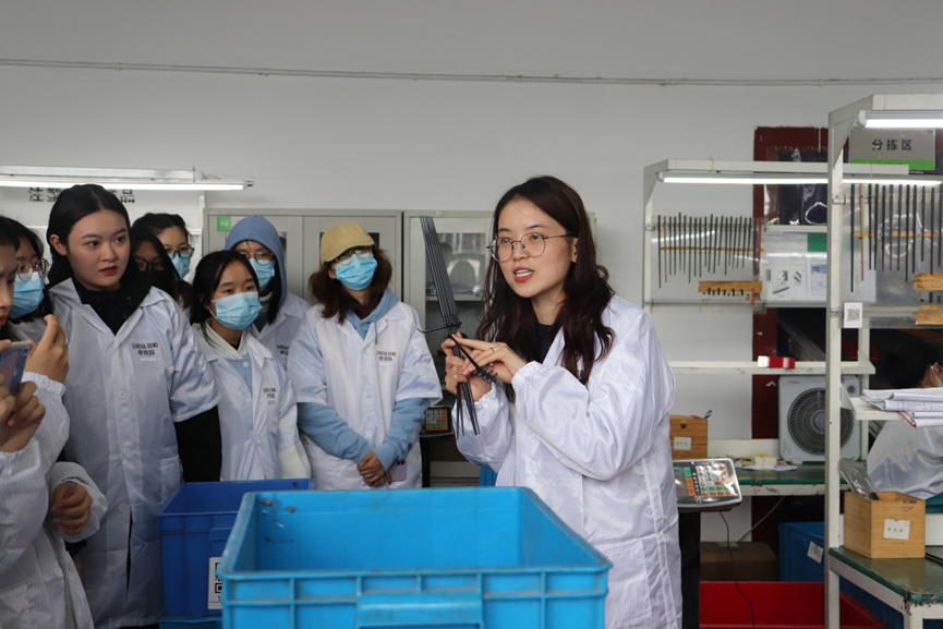 外贸业务相关工作人员带领大家参观了园区、车间、竹工坊和样品间,用详细的讲解激发了同学们关于短视频创作的灵感。
