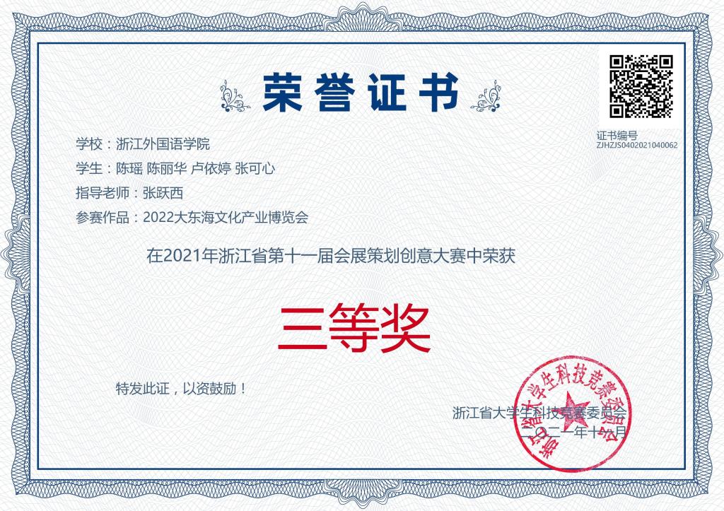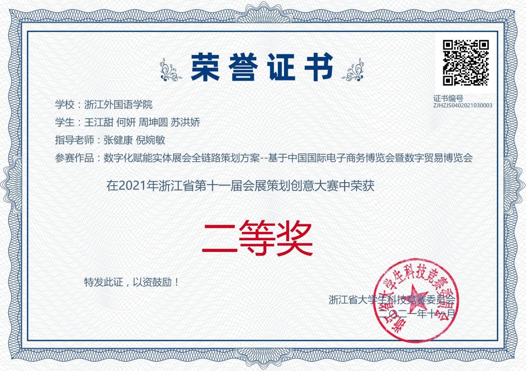 日前,浙江省第十一届会展策划创意大赛完成各项线上赛事工作圆满落幕。台湾三级片 老师带领的8支队伍,分别获得一等奖3项,二等奖3项,三等奖2项。