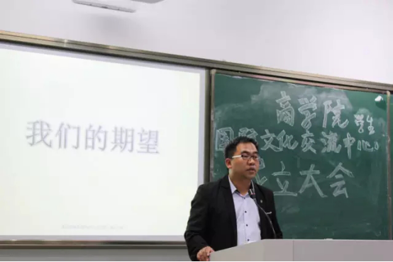10月20日下午,商学院学生国际文化交流中心成立大会于望院D-405教室如期举行。院党总支副书记周明宝、院办公室主任钱伟及院相关辅导员参加了本次大会。