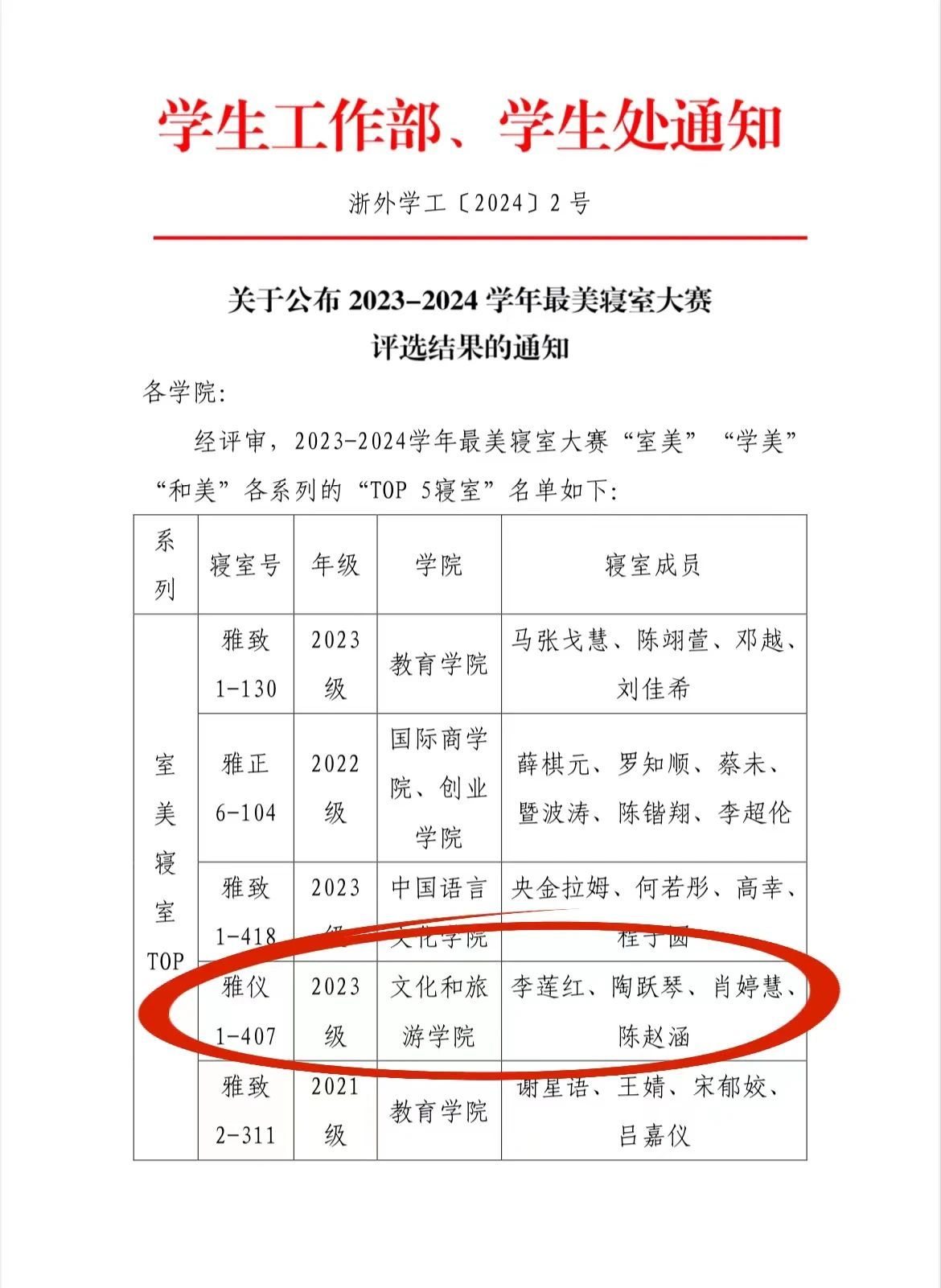 在2023—2024学年学校举办的“最美寝室大赛”中,文旅学院雅仪1-407(23旅管1班李莲红、陶跃琴、陈赵涵、肖婷慧)获评“室美”系列“TOP 5寝室”,让我们一起来康康获奖小窝吧!