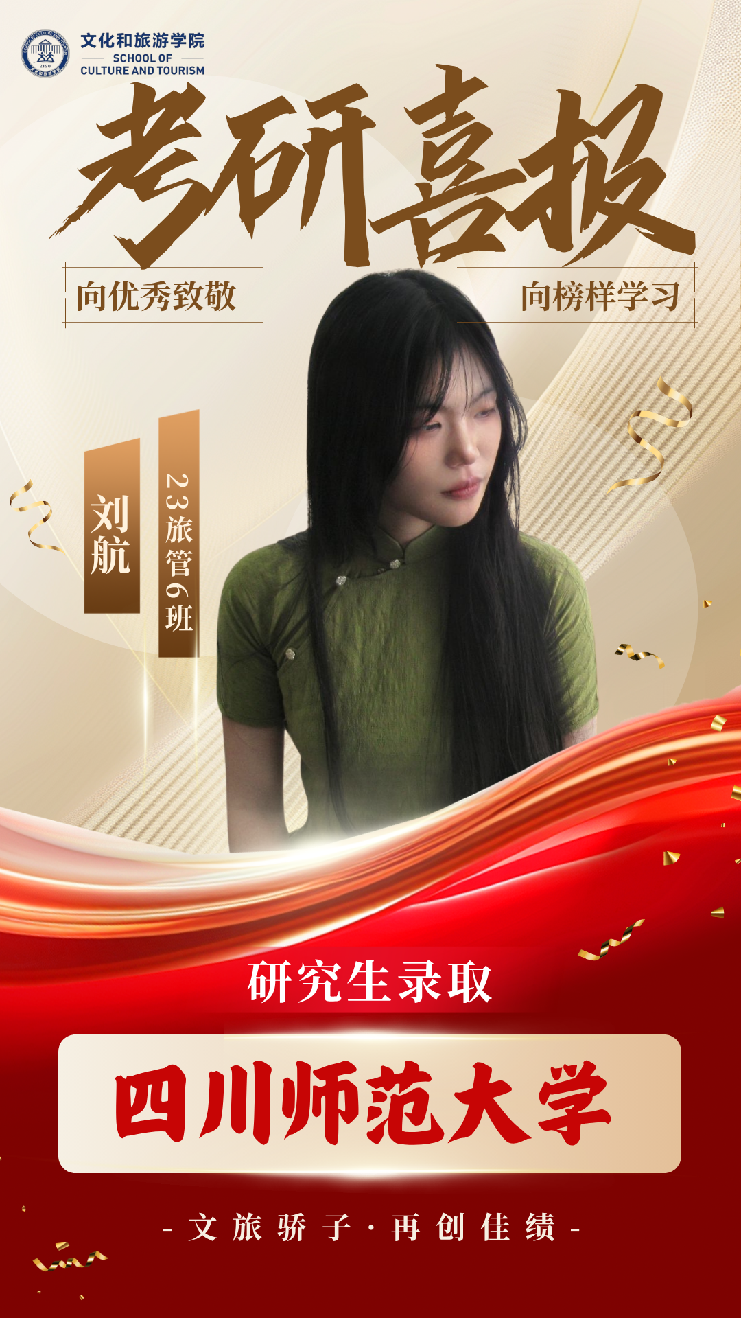 2025届文旅升学喜报 | 23级旅管6班刘航成功考取四川师范大学研究生