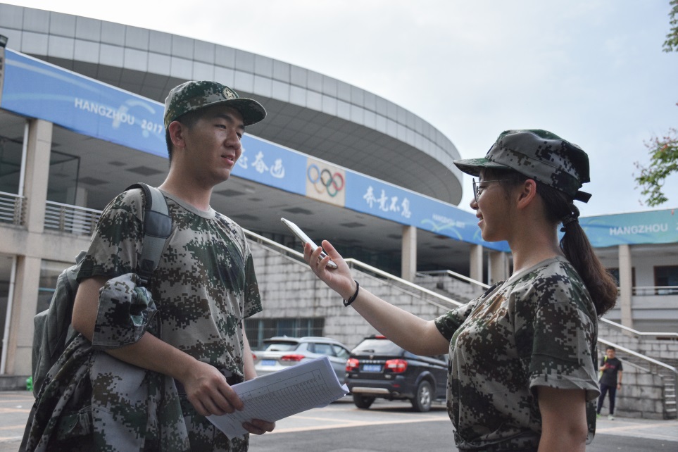 Q1:军训第三天了,有什么话想对一起训练的同学说吗?