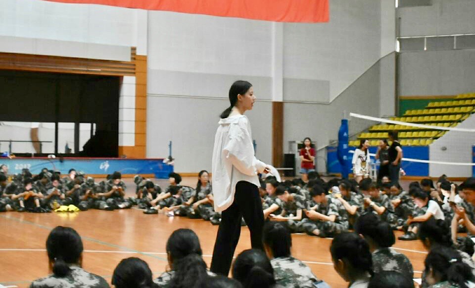 军训第四天,五连围坐在行健馆练习校歌,校歌的旋律悠扬,温柔如江南的氤氲水汽,又大气如江面的浩渺烟波,磅礴而富有诗意的词曲流淌耳畔。