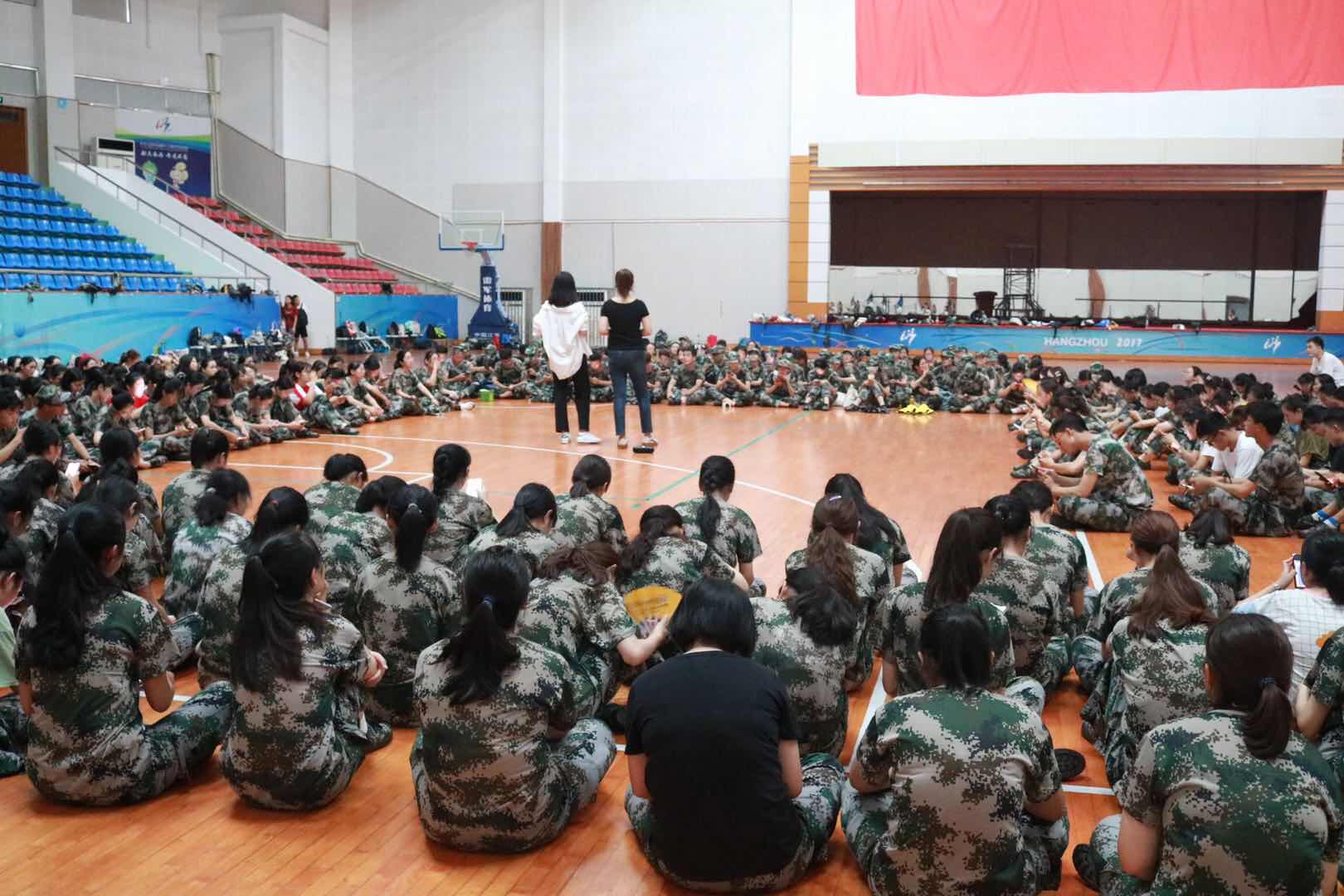 18级新生军训场地教授校歌。