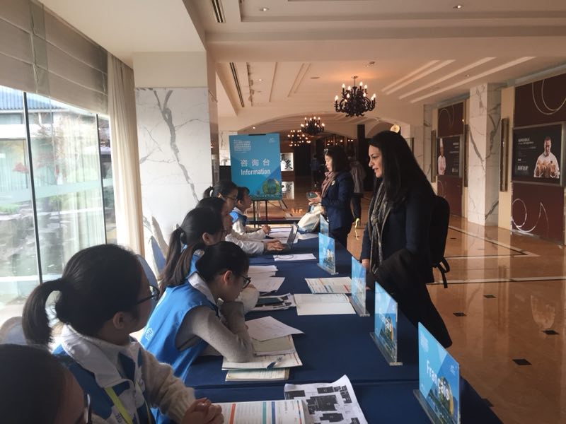 刚开始我还在想,这能有什么难的,不就是找到来宾们的名字画个勾,到时候在招呼他们上下车呗。然而在第一天工作中,一个个难题就接踵而来。首先是语言的问题,大会的来宾们来自世界各地,他们中很多的人也不是以英语为母语,大家都抄着各自的口音,这无疑为我们的工作增加了难度,然而我们并没有在被语言的拦路虎打趴下,一次次细心地核对,最终零差错地完成了预约的任务,在其中我也发现,很多时候,一个真诚的微笑,就是一种能被所有人理解的,最温暖的语言。另一个问题是纪律的问题,我们提供服务的咨询台就在酒店的大堂,每个进出酒店的人都会经过的地方,这意味着我们不管有没有人前来预约,都不能放松,一定要把我们最专业的一面展现在大家的面前。而我们常常需要一坐就是几小时,特别在长时间没有来宾过来办理预约的时候,难免会想要靠在椅子上,或者刷刷微博。可变得卓越的过程,往往不就是一个自律的过程吗?我们坐在咨询台前时,所代表的不止是我们自己,也代表了整个学校,甚至在某个角度上,我们代表了中国的青年志愿者,怀着这一份强烈的集体荣誉感,我们没有气馁,尽心尽力地完成了工作。