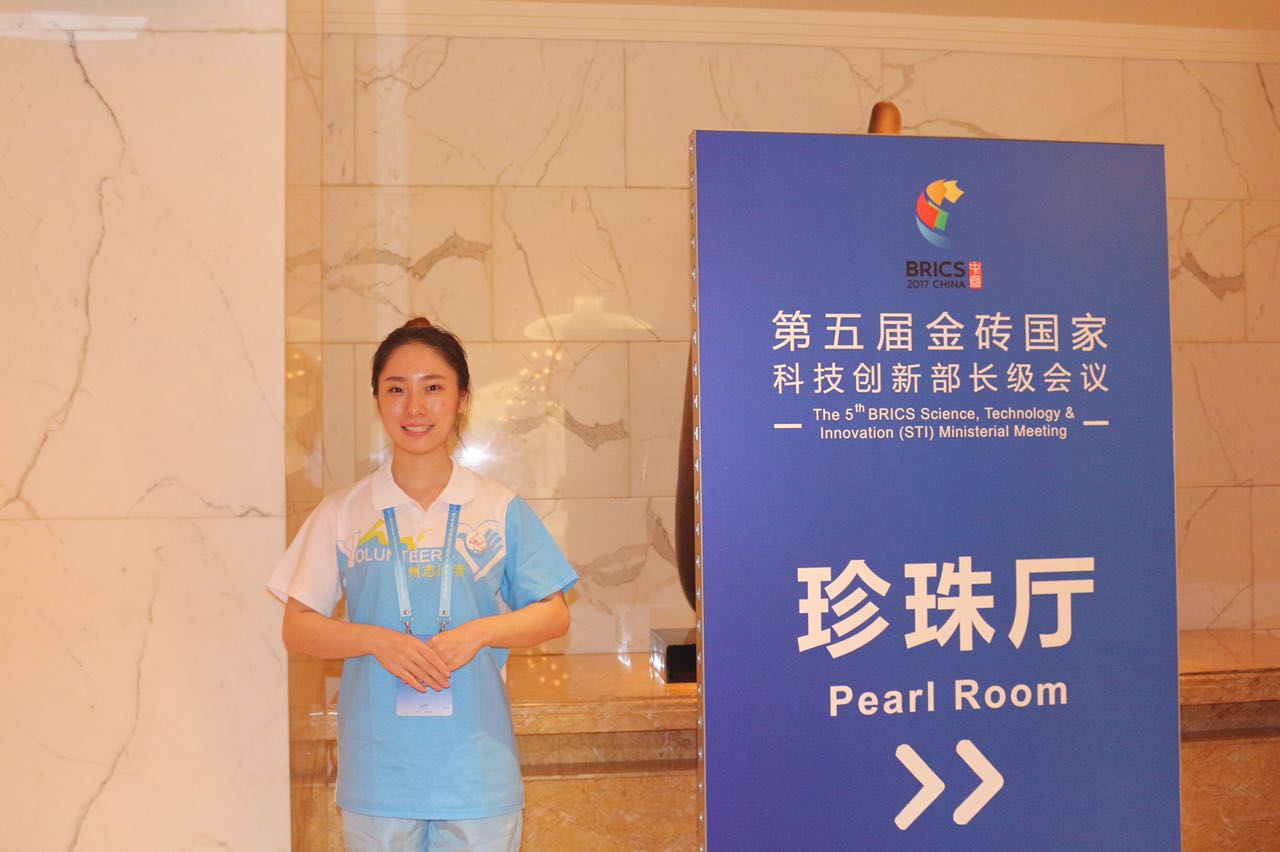 能参加此次第五届金砖国家科技创新部长级会议的志愿者活动,我感到十分荣幸,也切实感受到了国家会议程序的严密性,每一个岗位都有它存在的意义,不管是会场引导还是机场接待,我们在志愿者岗位上发挥着自己的光和热。虽然留下过汗水,但会议的圆满召开就是我们工作的最大动力。能将所学运用到生活实践中,也是一种生活经历和财富,这样的活动我还会继续参加,在不断的积累和沉淀中,为未来的工作学习打下坚实的基础。
