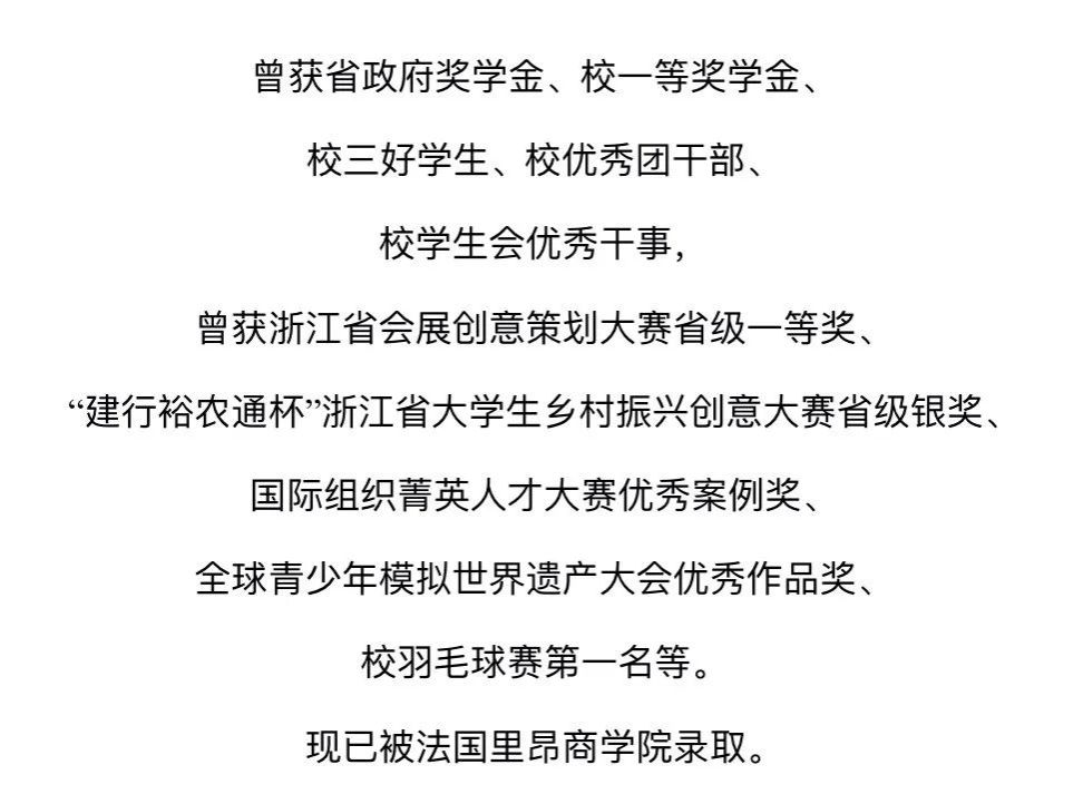 机会总是留给有准备的人。面对未来走向,俞子涵早早就做好了升学的总体规划。“我是从大一下决定要出国留学的,然后在大二签了中介,大二暑假开始准备语言等考试,并参加各类专业比赛,大三进行实习,大四上半学期完成申请。”