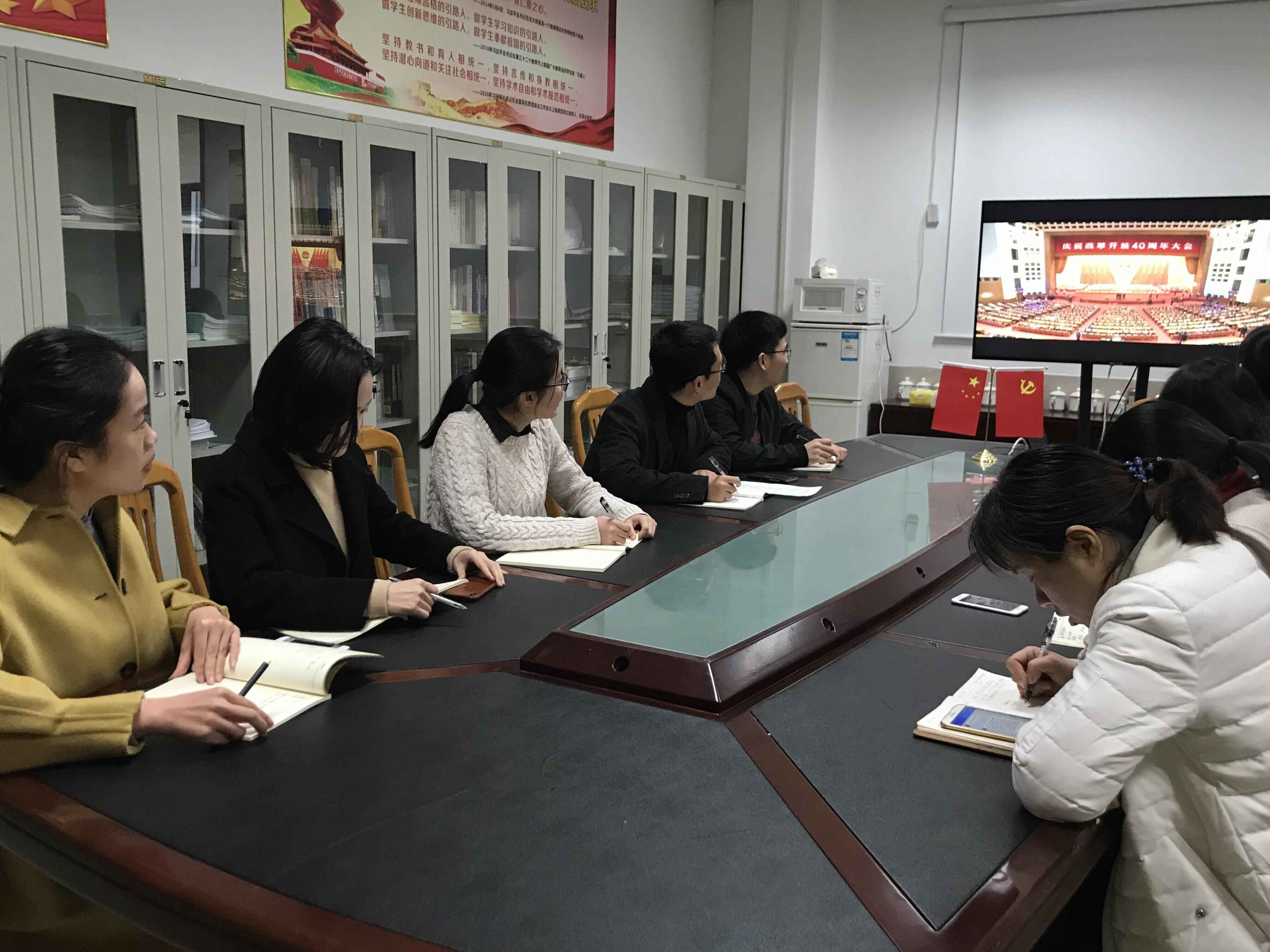 经管学院8个党支部师生党员50余人利用手机、电脑等设备,在教室、寝室、会议室等地多形式观看大会直播。与此同时,在望D-428学院会议室,上午10准时转播央视的直播现场,认真聆听习近平总书记讲话。全院上下掀起了观看庆祝大会的热潮,迅速把全院师生的思想和行动统一到大会精神上来,凝心聚力,为实现中华民族的伟大复兴贡献力量。大会结束后,台湾三级片