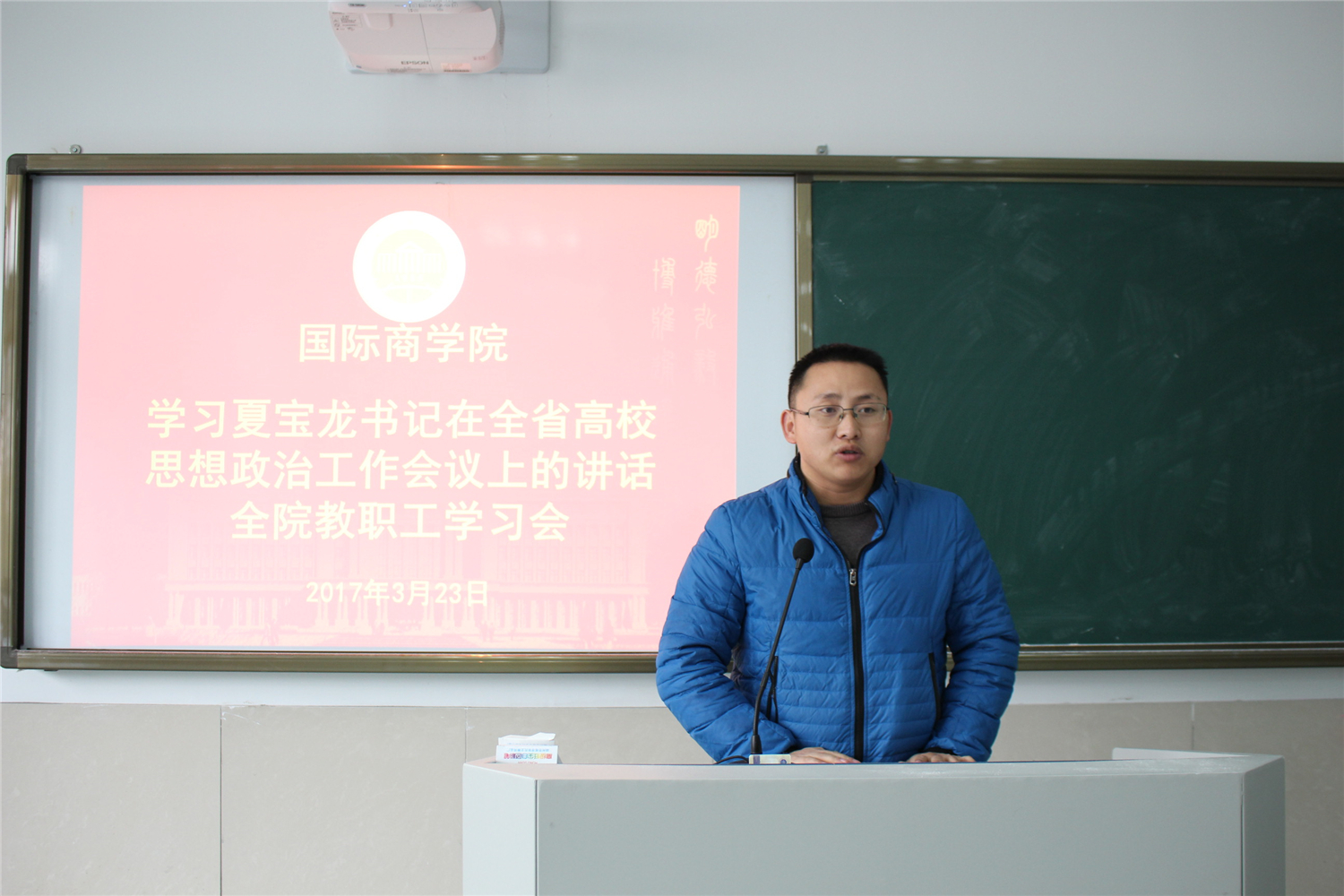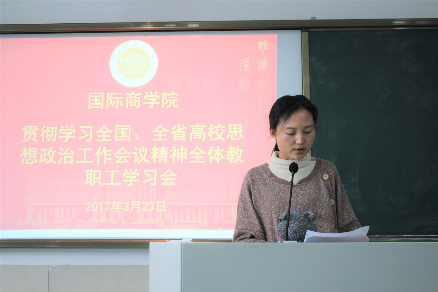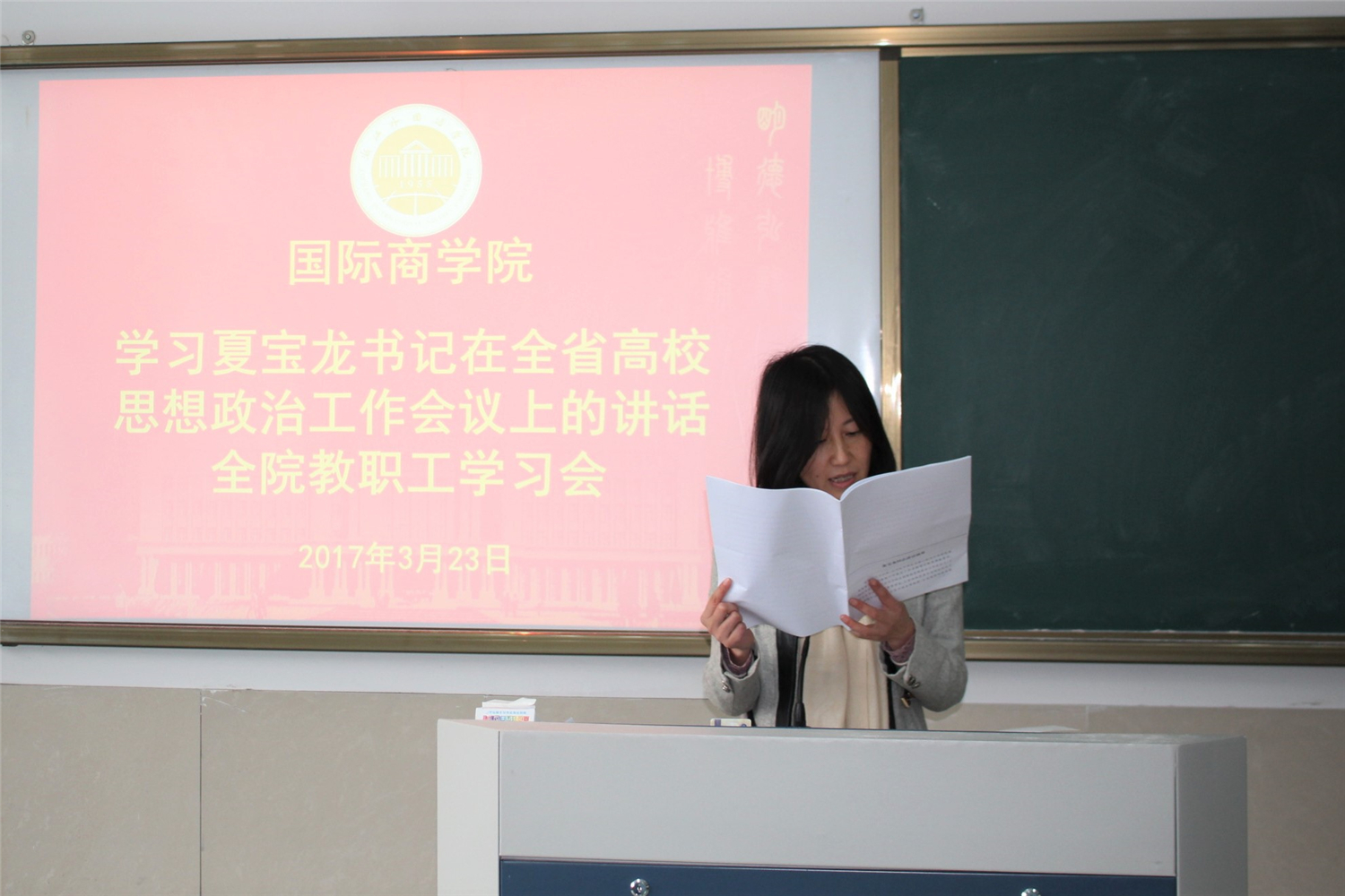 3月23日下午,台湾三级片 召开全院教职工大会,组织学习全国全省高校思想政治工作会议精神。会上,学院党总支负责人和大家一起学习了夏宝龙书记在浙江省高校思想政治工作会议上的讲话摘要原文。