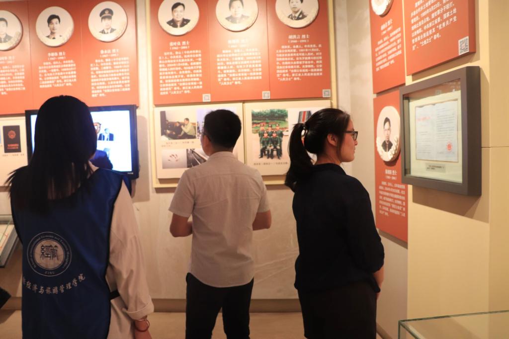 在瞻仰烈士纪念碑并敬献花环后,全体师生党员绕“浩气长存”主题雕塑一周,不时停住脚步深情凝视历史的痕迹,表达对革命先烈的崇高敬意。在烈士纪念碑前,深切缅怀革命先烈,重温入党誓词。在纪念馆内,一幅幅照片,一张张实物,将同学们的思绪带回到烽火连天的革命年代。革命先烈们的事迹体现出坚定的理想信念,在场师生深受感染。
