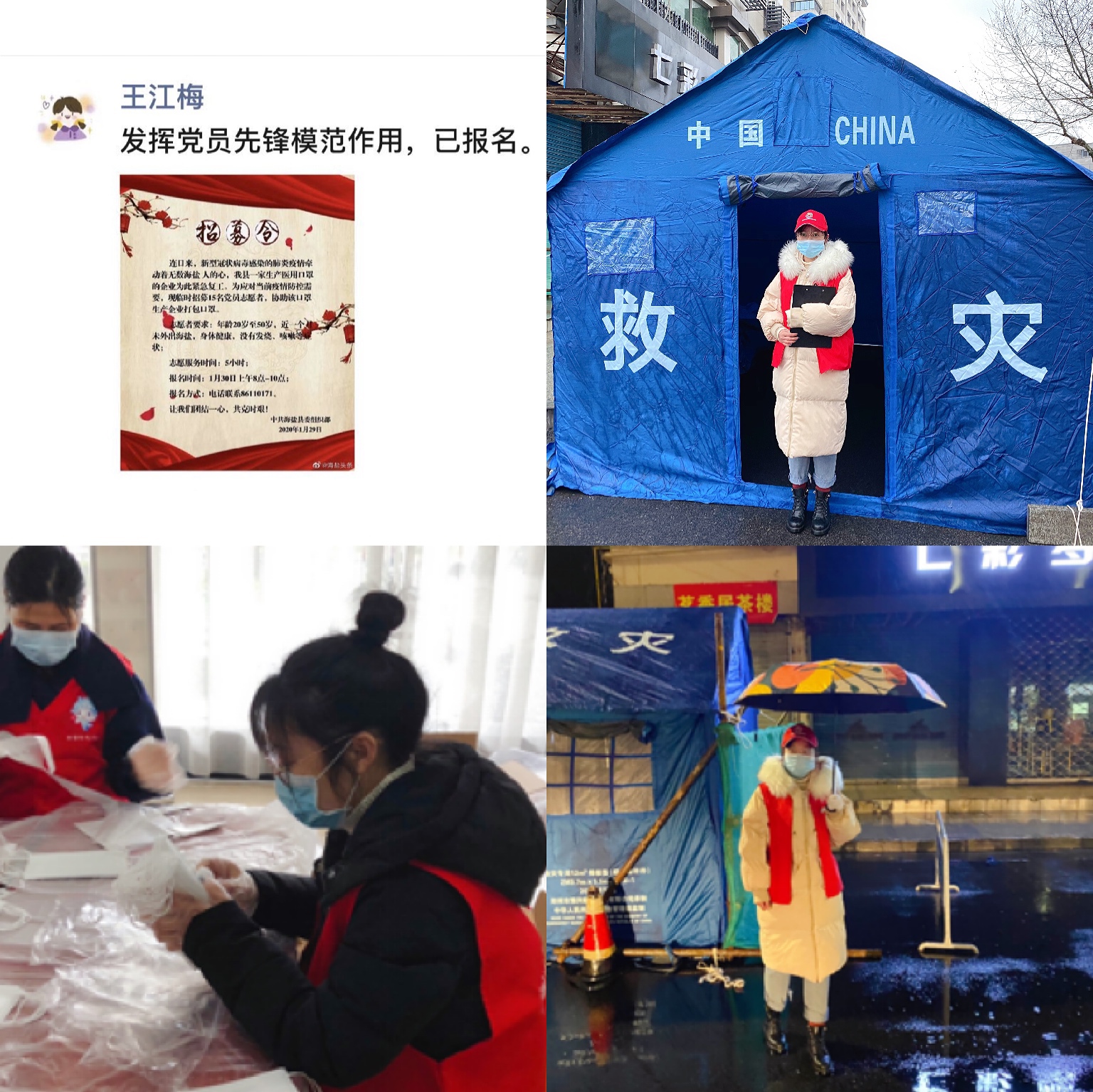 “我只是在用自己微薄的力量支持防疫工作,这是一名共产党员应该做的”,17旅管1班预备党员王江梅在看到嘉兴市志愿者的招募令后,于26日至8日参加了守卫家园和口罩包装志愿活动。志愿服务期间她每日要在社区出入口站岗10小时,并要完成近8000只口罩的打包工作。在完成相关志愿活动后,她还利用自己的空闲时间,给社区执勤的工作人员送去了自制的饼干、蛋糕和银耳粥等食物。
