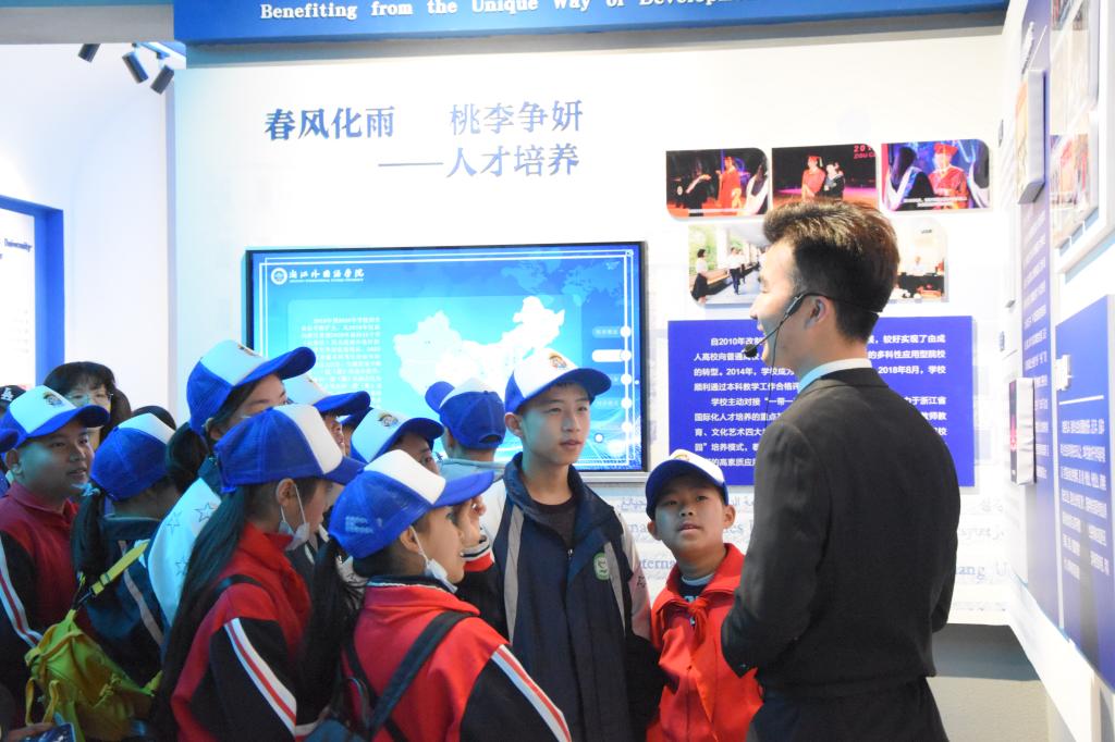 为大力推进东西部扶贫协作,推动教育组团式帮扶向纵深发展, 326日,贵州省剑河县第三中学、剑河县城关五小中小学生来到浙外进行研学活动,经旅学院志愿者党员带领其参观校园并在校史馆中开讲一堂“传承红色基因”的微党课。