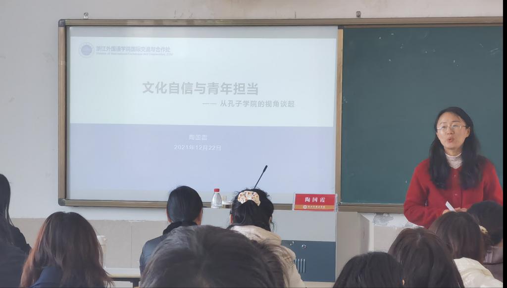 自信才能自强,自强更能担当。立足自身近20年跨文化交流经验,结合在安提瓜和巴布达孔子学院教学工作经历,陶老师指出了当前文旅融合的趋势,进一步阐明了文化自信和青年担当的关系——因为自信,更加担当,因为担当,更加自信,互为因果,相互统一。她也告诉并呼吁我们文旅学子:文化和旅游业是文化自信的成果、也是土壤;文化和旅游业是浙外青年担当的考场、也是赛场。