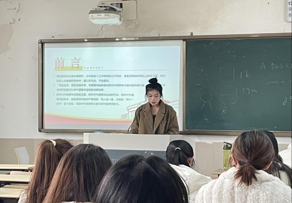 12月7日,2022年度第2期入党积极分子培训第二次集中培训在望D414举行。20会展1班预备党员吴恩惠子作为学生代表,结合理论和自身实际,为积极分子们讲述了一堂生动的党课。