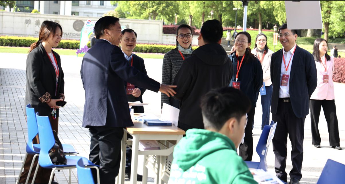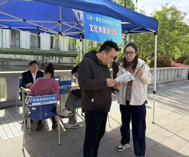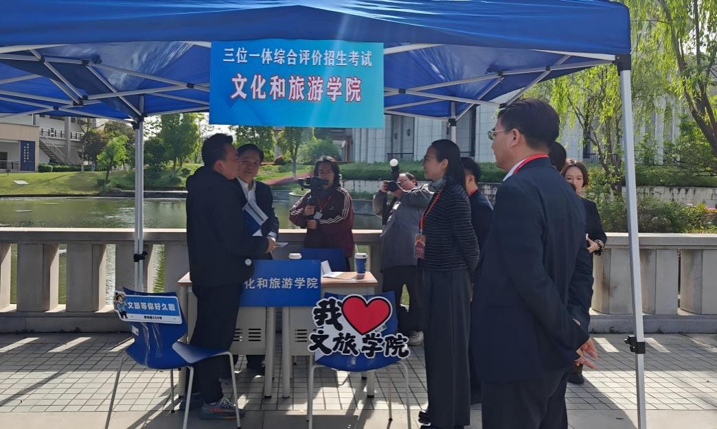 校长、党委副书记张环宙带队,副校长、党委委员柴改英,党委副书记徐勇和学工部、学生处处长陆卫斌等一同来到招生宣传现场,与正在咨询的考生家长交流,了解家长们对浙外的期待,对文旅的兴趣。张校长特别提到,目前在省委、省政府支持下,浙外正与北京大学展开全面合作,文旅学院与北大相关学院和机构合作开设了数智赋能文旅人才创新班,并即将推出国际传播赋能文旅人才创新班,为广大学子提供更多学习资源。