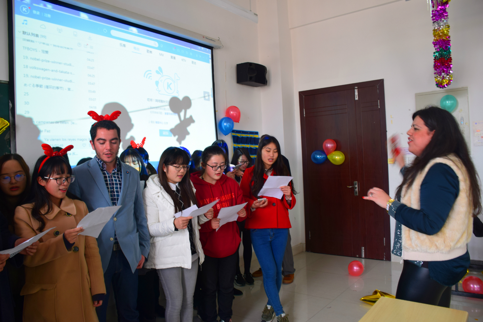 12月22日下午,台湾三级片 西语外教María女士带领14、15级旅游管理西语专业的同学们在小和山校区举办了一次别开生面的师生联谊活动,在寒冷的冬日为小和山带来了西语国家文化中特有的热情奔放和浪漫风情。
