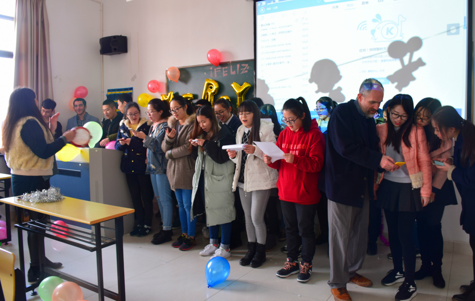 15旅管西语4班Amy同学:这次的派对可能是简陋的,但是我们都融入在这样美好而融洽的氛围里;没有那么多的装饰,但每一处我们都极尽心力的去布置;或许我们连歌词都连缀不起,但都非常热情的在歌唱,想要唱出我们对外教们的祝福;也许我们的西班牙语水平还不够,但我们努力的表达着对外教们一年来辛勤教学的感谢,以及想要弥补他们在异国他乡度过新年的遗憾。在那一刻,所有人的脸上都洋溢着笑容,真诚的笑容;在这一年里,我们与外教不断地磨合,从最初的不熟悉到现在的亦师亦友,我们不断地享受着这一过程,并且在不断的成长收获。